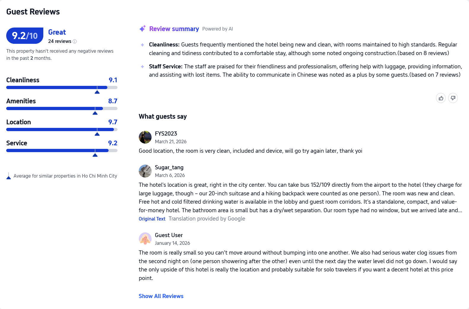 我们致力于提供无缝衔接的入住体验,包括全天候前台服务、覆盖全酒店的高速无线网络以及每日客房清洁服务。. 需要旅行建议、机场接送或行李搬运服务吗?我们友好的团队随时为您服务。我们提供舒适的空调环境、安全的出入通道以及靠近交通枢纽的中心位置。, 每一项服务都旨在简化您的西贡之旅。.